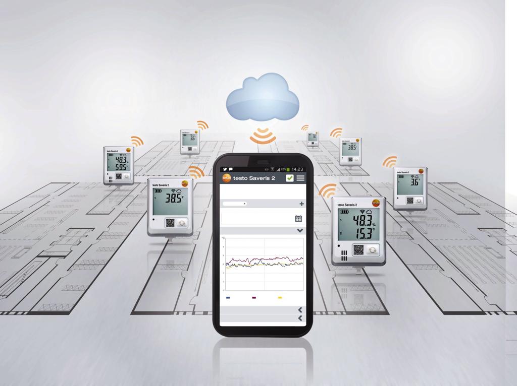 L’enregistreur de données WiFi testo Saveris 2-T2, vous permet de surveillez les températures des stocks, chambres froides et lieux de travail. Additionnellement, les ouvertures de portes peuvent également être contrôlées. Les données de mesure sont enregistrées de manière fiable sur de longues périodes et envoyées directement vers le Cloud Testo (hébergement des données en ligne) grâce au réseau WiFi. Les valeurs sont ensuite consultables partout et à tout moment via un Smartphone, une tablette ou un PC connecté à Internet.
